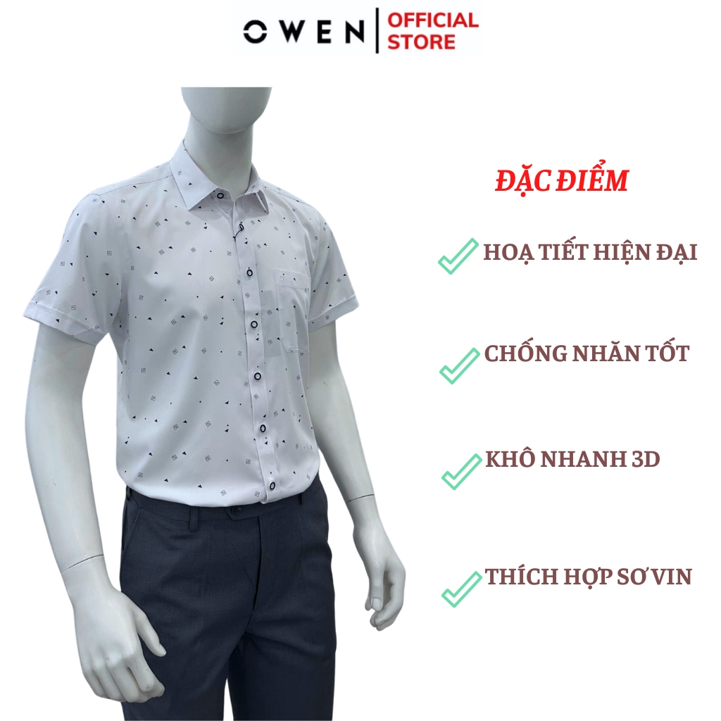 Áo sơ miÁo Sơ Mi Nam Tay Ngắn Owen Sử dụng chất liệu sợi cao cấp vừa thoáng mát, vừa hạn chế nhăn nhàu giúp bạn dễ là ủi và tiện lợi khi mặc hằng ngày để đi học, đi làm hay đi chơi cùng bạn bè.