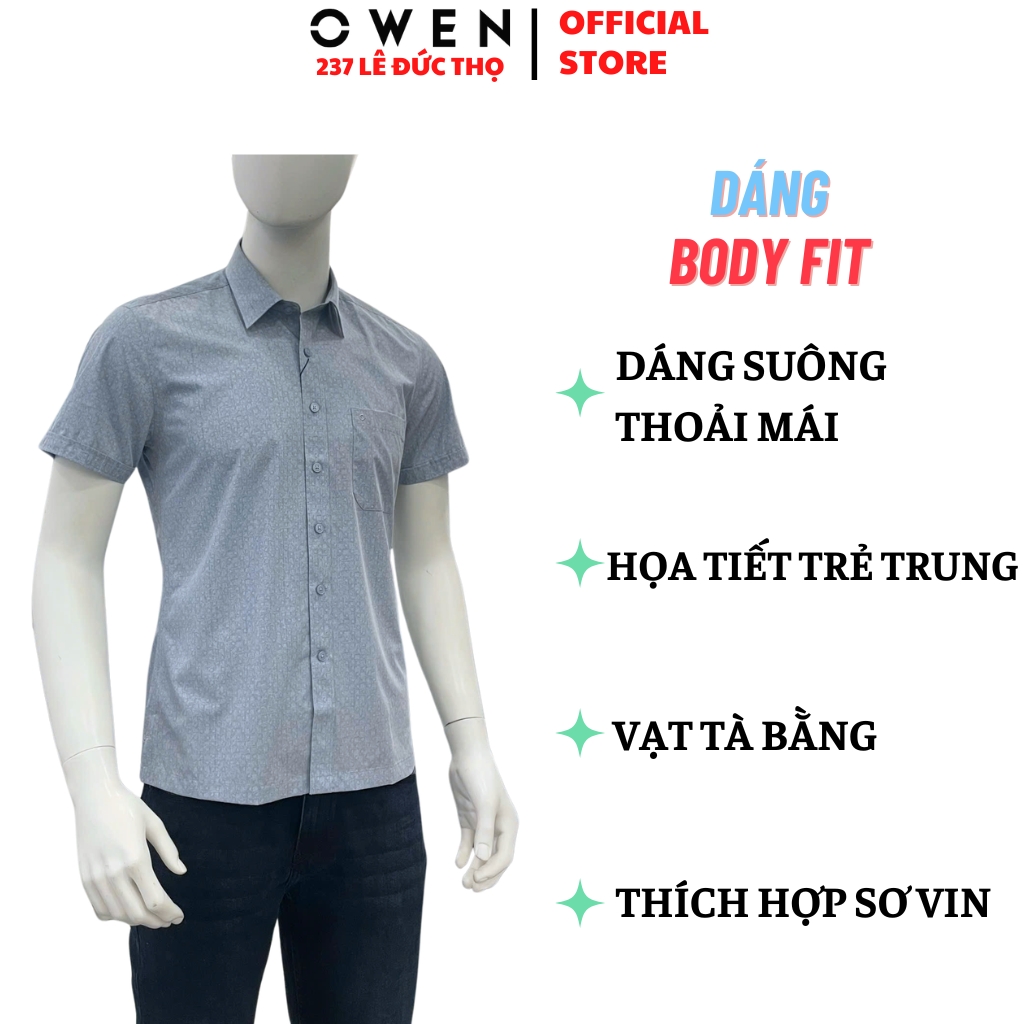 Áo sơ miÁo Sơ Mi Nam Tay Ngắn Owen Sử dụng chất liệu sợi cao cấp vừa thoáng mát, vừa hạn chế nhăn nhàu giúp bạn dễ là ủi và tiện lợi khi mặc hằng ngày để đi học, đi làm hay đi chơi cùng bạn bè.