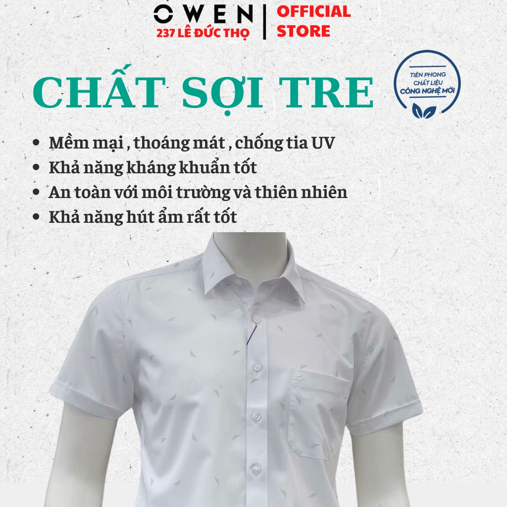Áo sơ miÁo Sơ Mi Nam Tay Ngắn Owen Sử dụng chất liệu sợi cao cấp vừa thoáng mát, vừa hạn chế nhăn nhàu giúp bạn dễ là ủi và tiện lợi khi mặc hằng ngày để đi học, đi làm hay đi chơi cùng bạn bè.