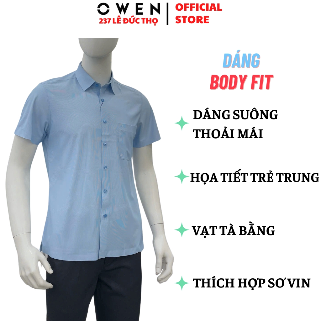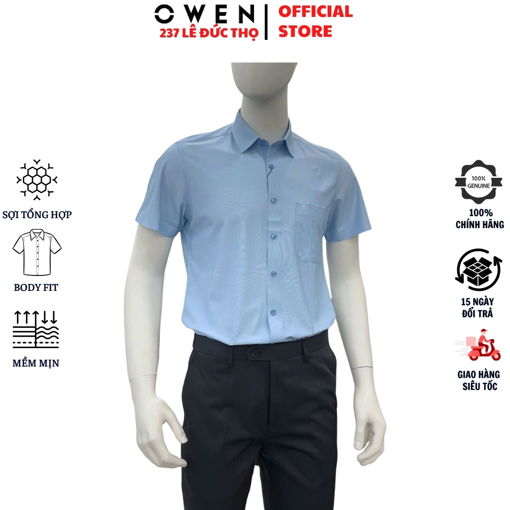 Áo sơ miÁo Sơ Mi Nam Tay Ngắn Owen Sử dụng chất liệu sợi cao cấp vừa thoáng mát, vừa hạn chế nhăn nhàu giúp bạn dễ là ủi và tiện lợi khi mặc hằng ngày để đi học, đi làm hay đi chơi cùng bạn bè.