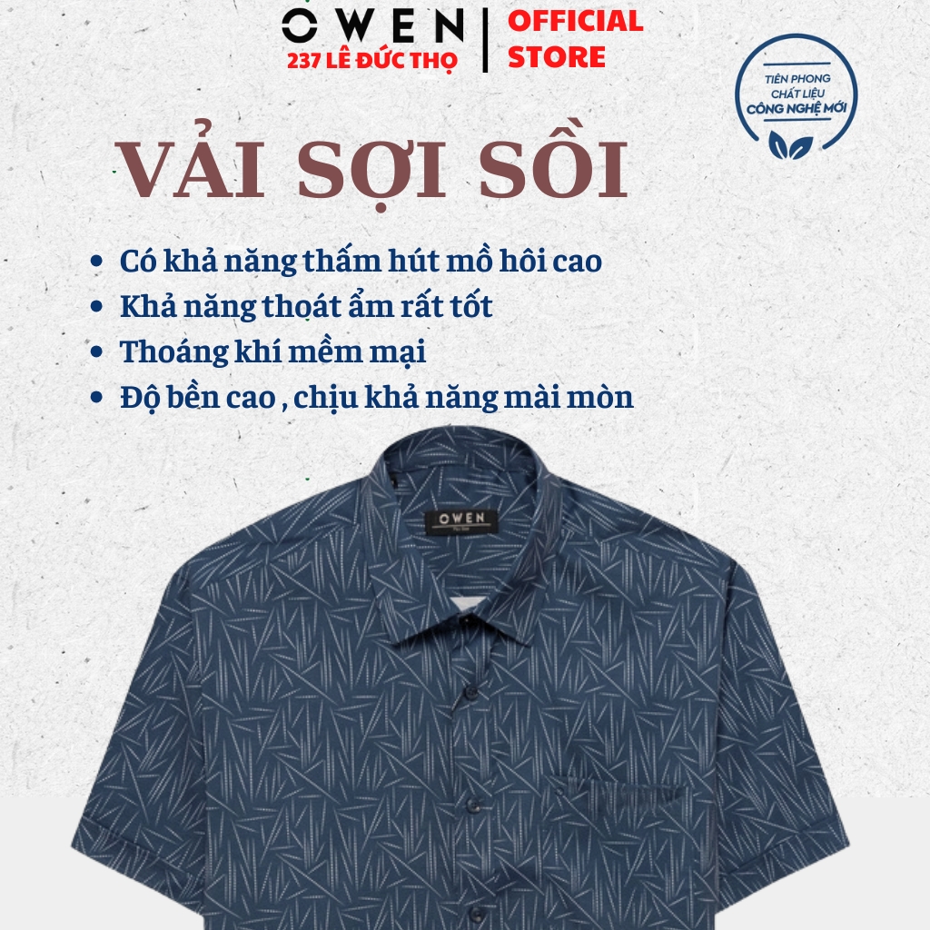 Áo sơ miÁo Sơ Mi Nam Tay Ngắn Owen Sử dụng chất liệu sợi cao cấp vừa thoáng mát, vừa hạn chế nhăn nhàu giúp bạn dễ là ủi và tiện lợi khi mặc hằng ngày để đi học, đi làm hay đi chơi cùng bạn bè.