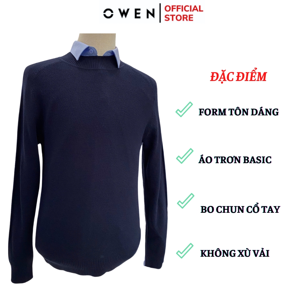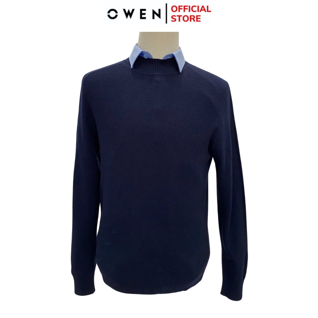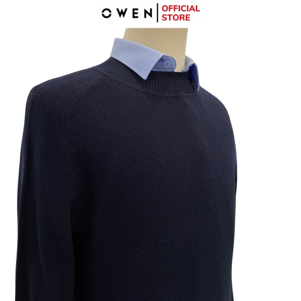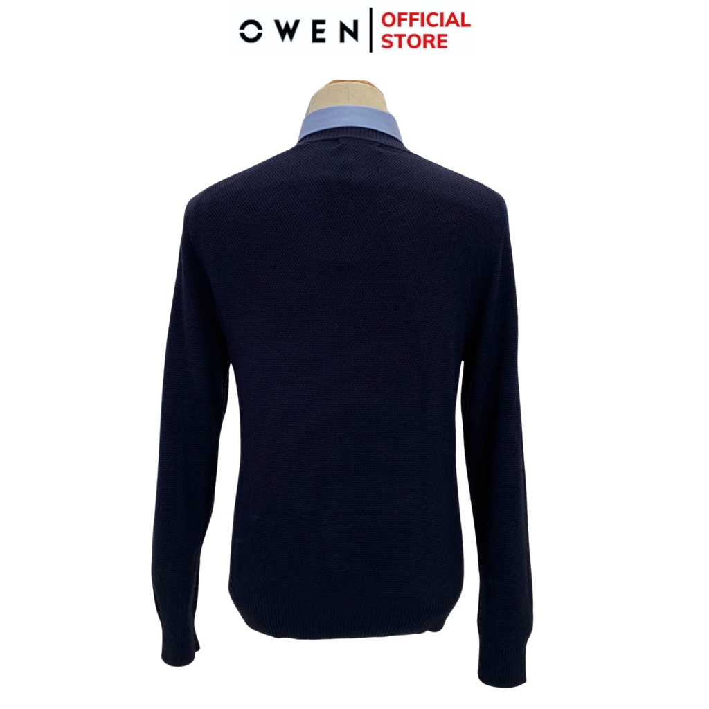 Áo len nam owen ALC241296 màu xanh tím than dáng suông regular fit cổ 3 phân chất liệu Acrylic