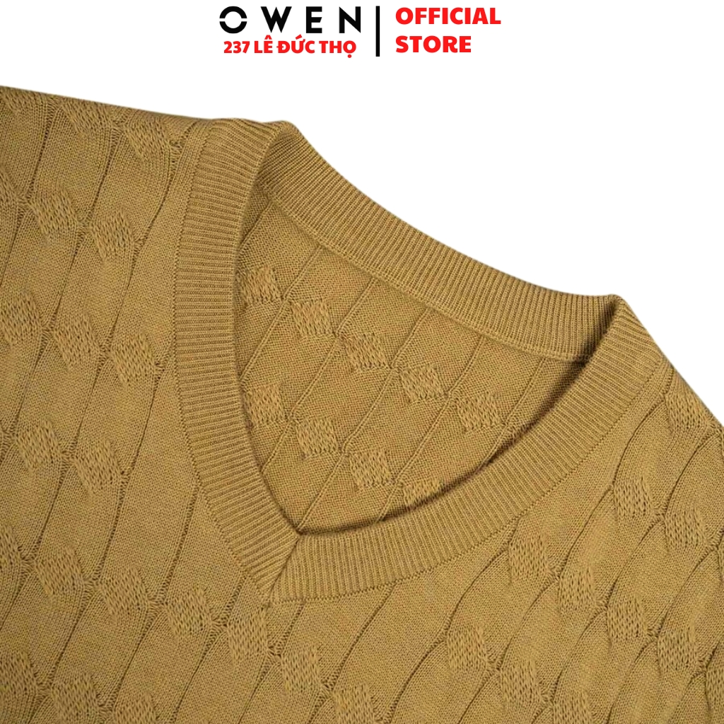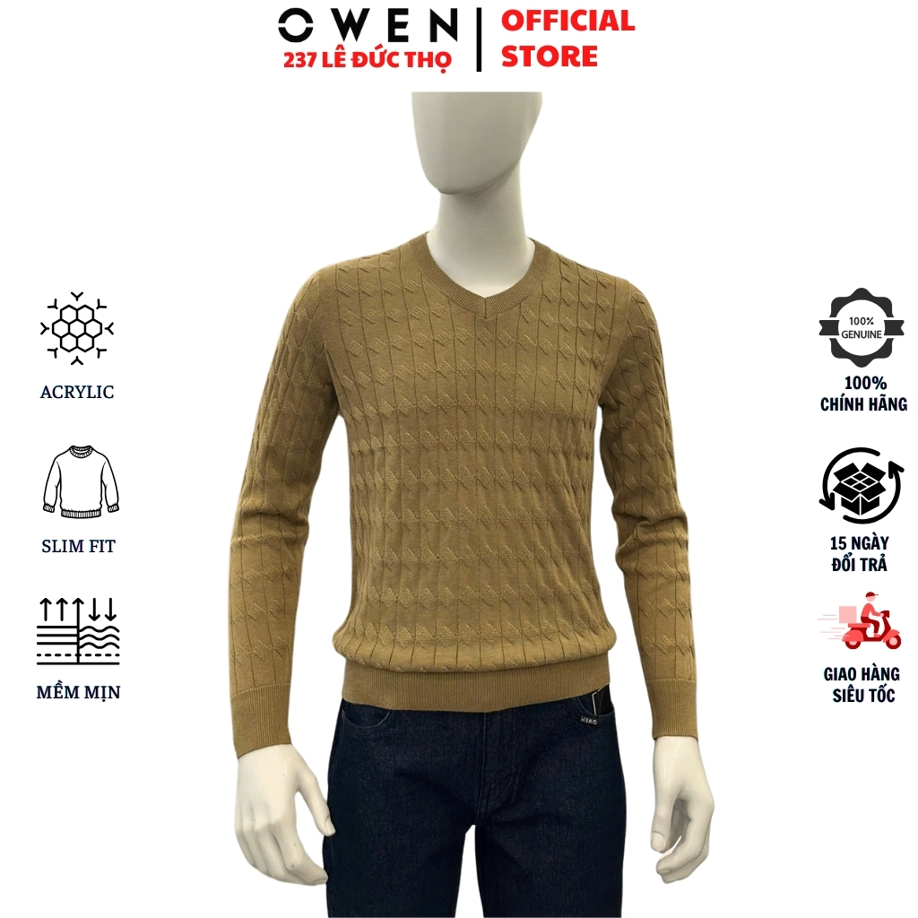 Áo len nam Owen ALC256011 màu rêu nhạt dáng ôm slim fit cổ tim chữ V chất liệu len acrylic cotton