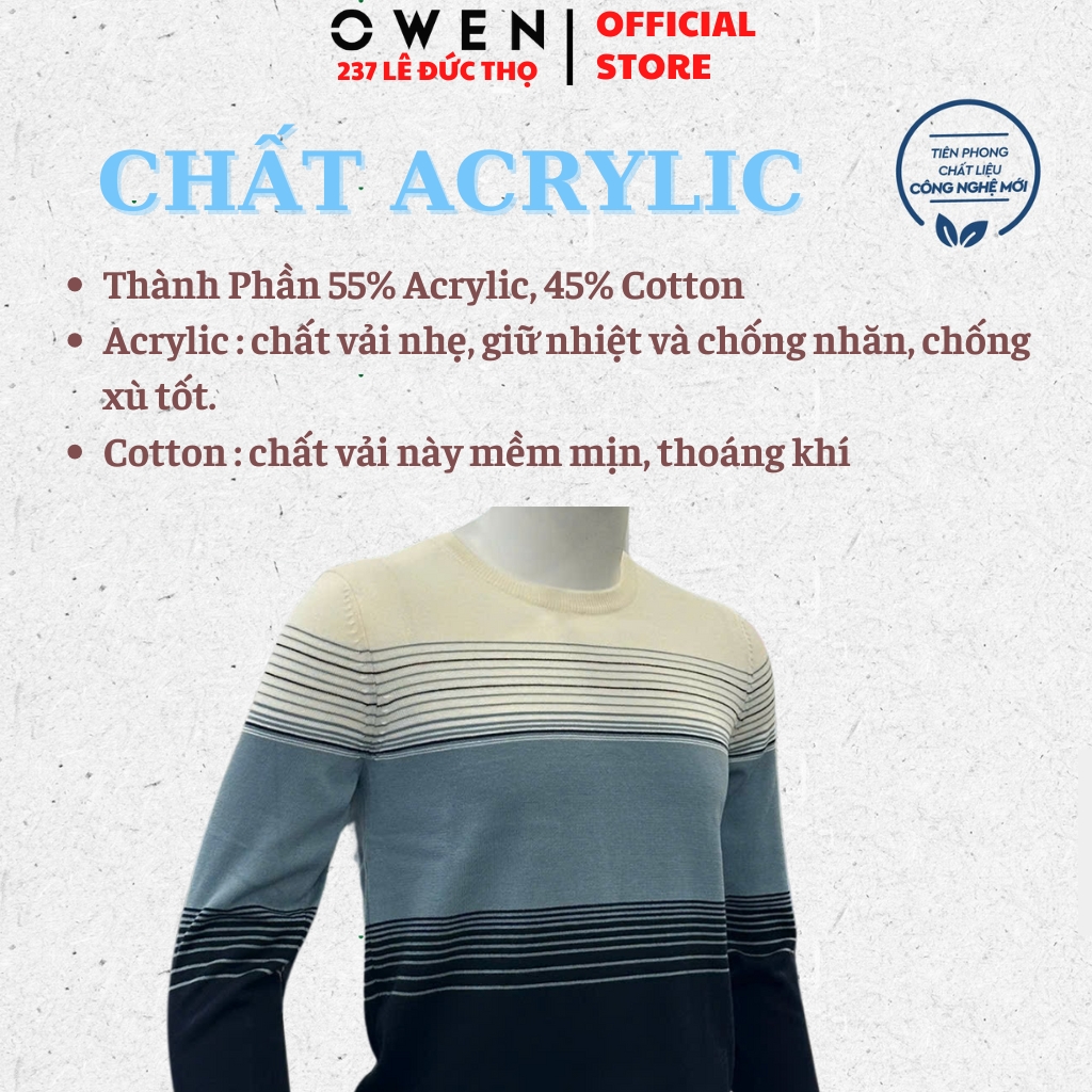 Áo lenÁo len Owen được may từ chất liệu Acrylic, Cotton mềm mịn và tạo cảm giác thoải mái khi mặc. Kiểu dáng thời trang, trẻ trung với thiết kế độc đáo phối tông màu nổi bật. Có thể kết hợp cùng nhiều đồ khác nhau và các loại phụ kiện thời trang, thích hợp diện đi làm, đi học hoặc đi dạo phố cùng bạn bè. Đường may tỉ mỉ, chắc chắn, tạo cảm giác khỏe khoắn cho người mặc.