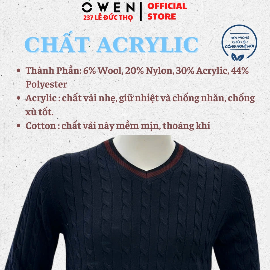 Áo lenÁo len Owen được may từ chất liệu Acrylic, Cotton mềm mịn và tạo cảm giác thoải mái khi mặc. Kiểu dáng thời trang, trẻ trung với thiết kế độc đáo phối tông màu nổi bật. Có thể kết hợp cùng nhiều đồ khác nhau và các loại phụ kiện thời trang, thích hợp diện đi làm, đi học hoặc đi dạo phố cùng bạn bè. Đường may tỉ mỉ, chắc chắn, tạo cảm giác khỏe khoắn cho người mặc.