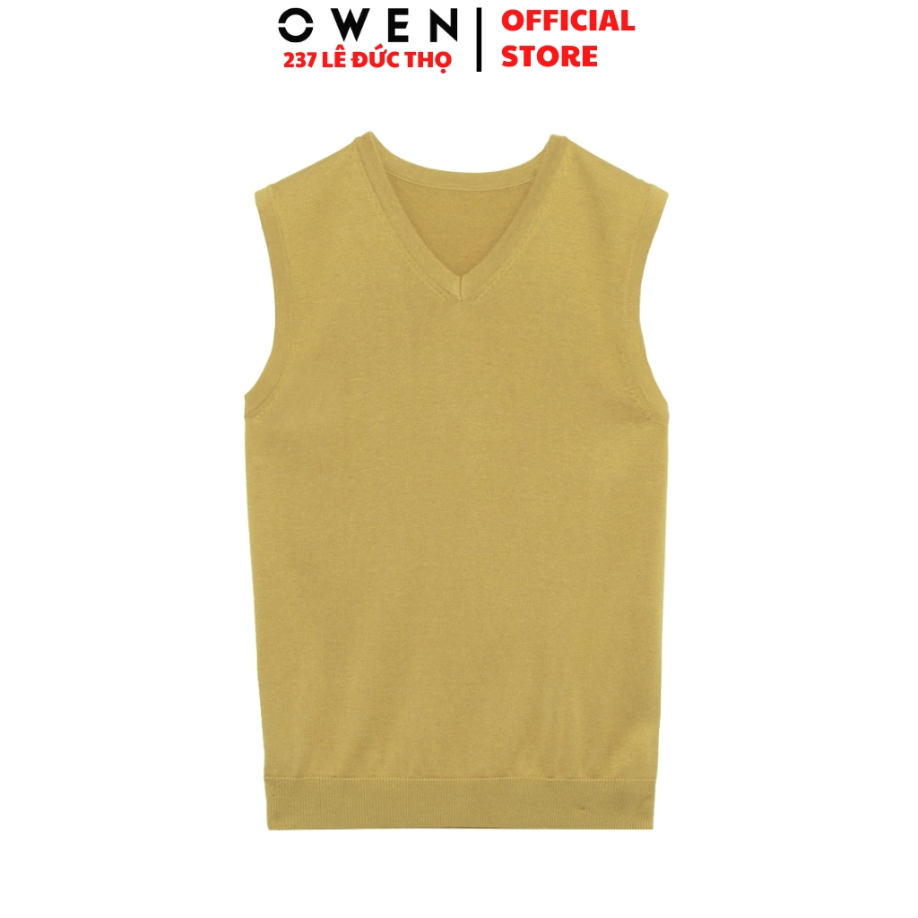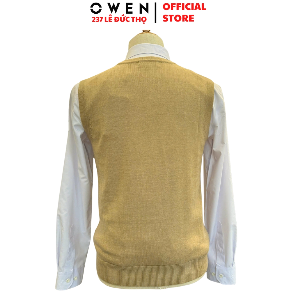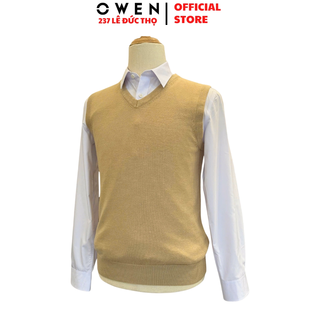 Áo len nam Owen ALG256007 Áo Gile len màu be dáng suông regular fit cổ tim chữ V chất liệu len acrylic cotton