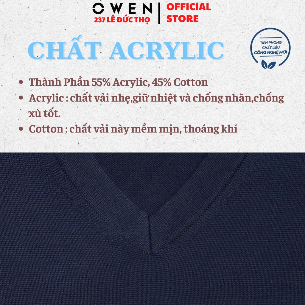 Áo len nam Owen ALG256272 màu xanh tím than trơn áo gile cổ tim dáng suông regular fit Áo lenÁo len Owen được may từ chất liệu Acrylic, Cotton mềm mịn và tạo cảm giác thoải mái khi mặc.