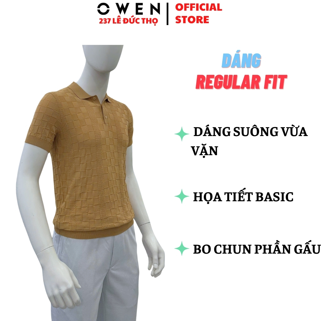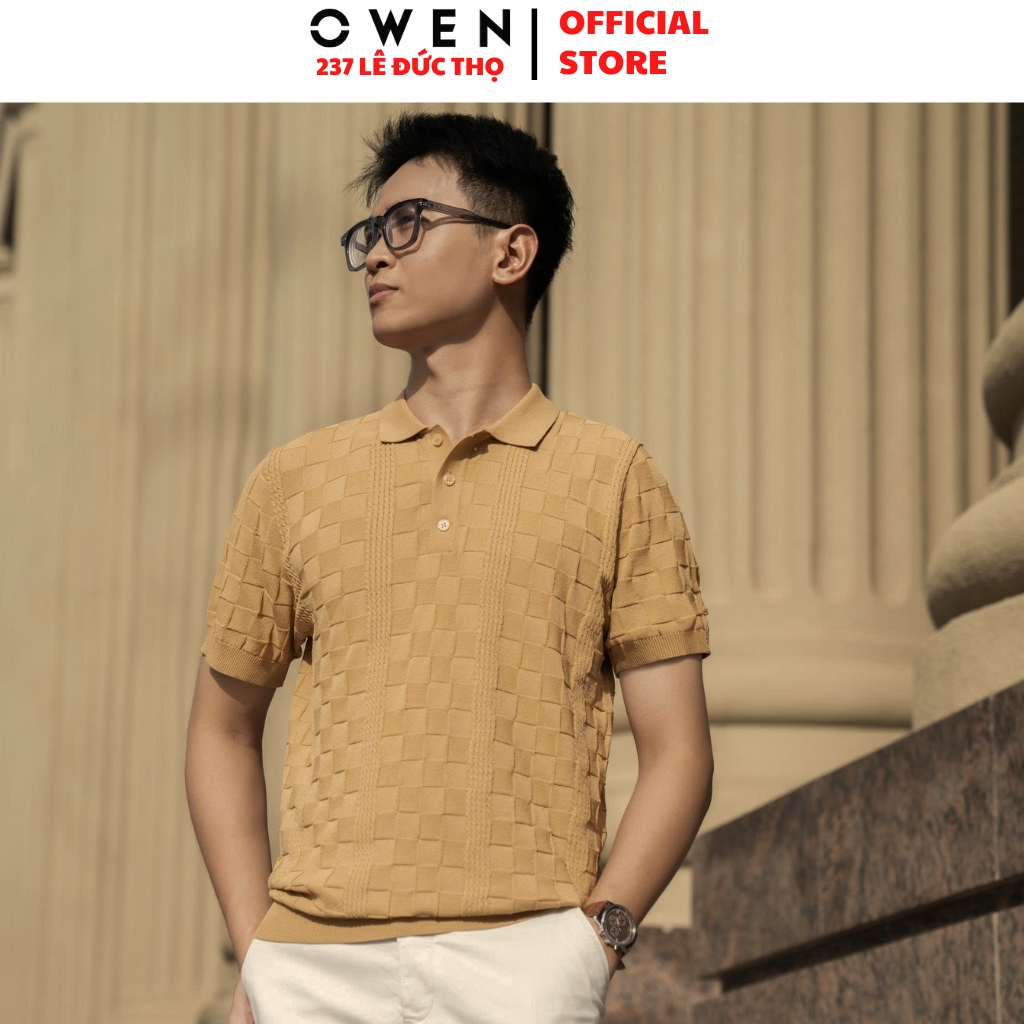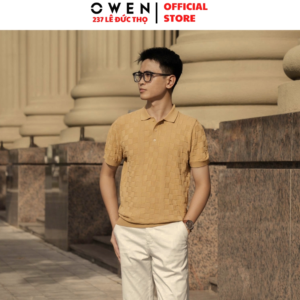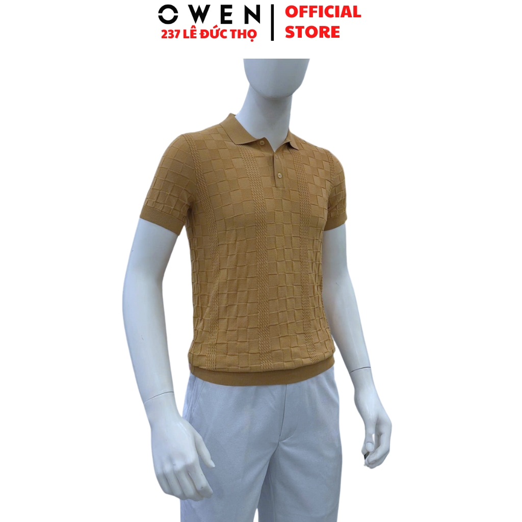 Áo Polo len ngắn tay Owen ALP251290N màu nâu nhạt dáng suông regular fit chất liệu Rayon