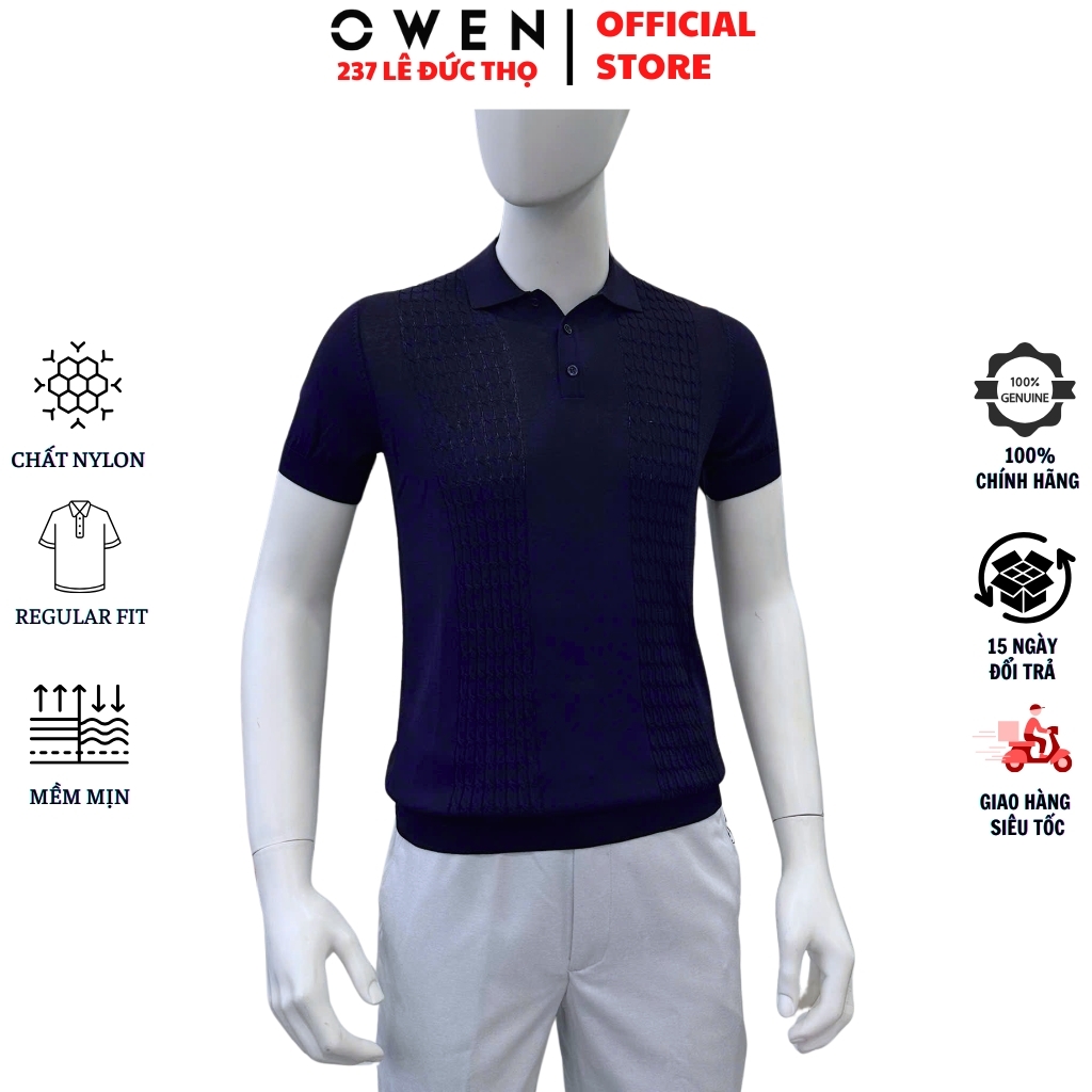 Áo Polo len ngắn tay Owen ALP251291N màu xanh tím than dáng suông regular fit chất liệu Rayon