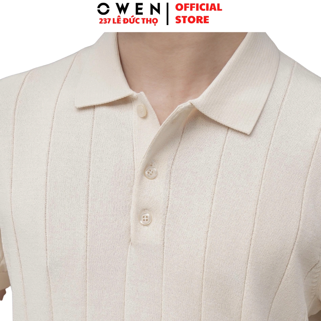 Áo Polo LenÁo Polo Len Nam Tay Ngắn Có Cổ Owen được may từ sợi len handfeel mềm mại, thoải mái được dệt mỏng, thoáng khí, giữ ấm nhẹ, phù hợp thời tiết thu.
