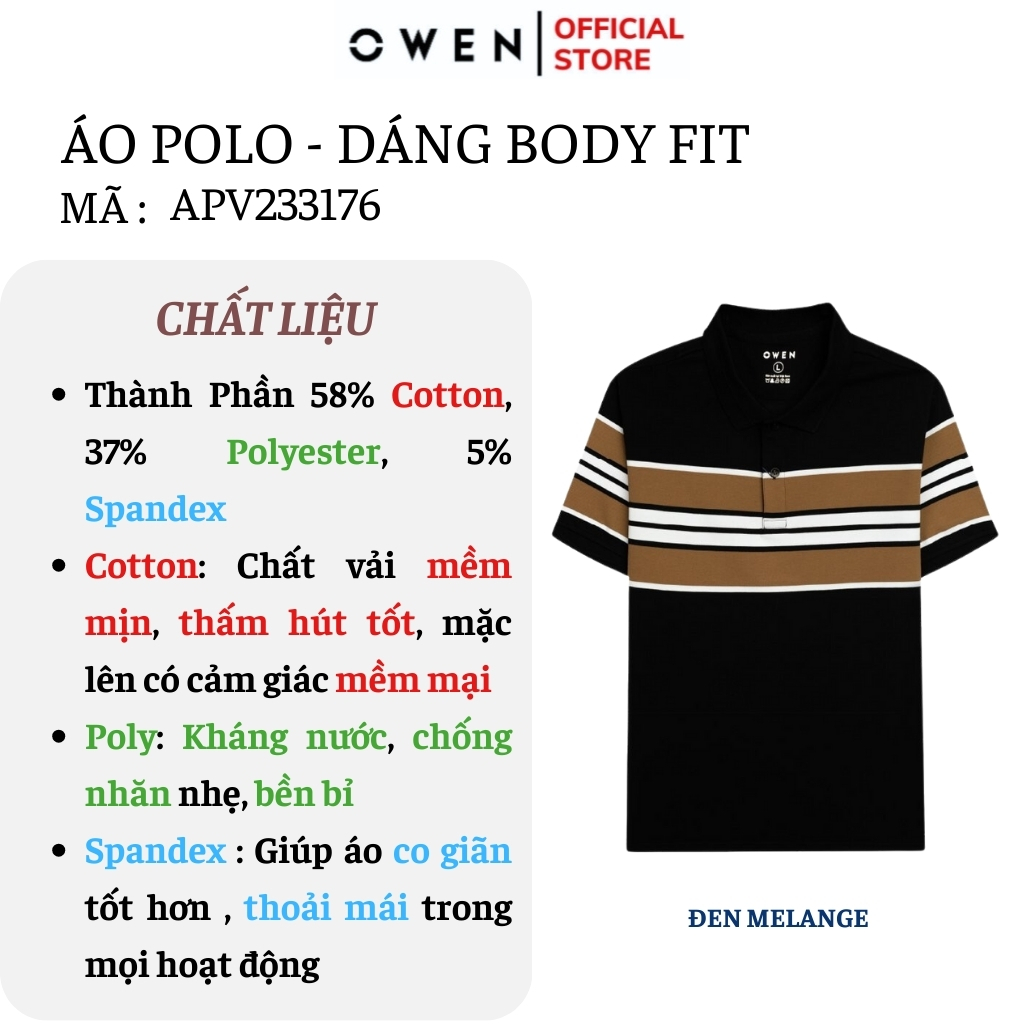 Áo Polo Nam Owen có gam màu trẻ trung, độ bền màu cao, dễ dàng phối với nhiều trang phục