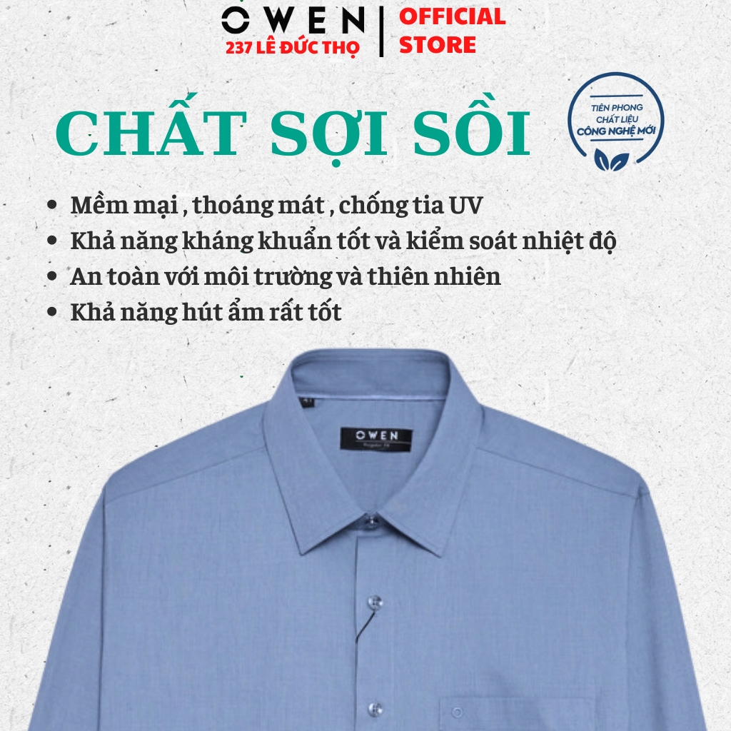 Áo sơ miÁo Sơ Mi Nam Tay Dài Owen sử dụng chất liệu sợi cao cấp vừa thoáng mát, vừa hạn chế nhăn nhàu giúp bạn dễ là ủi và tiện lợi khi mặc hằng ngày để đi học, đi làm hay đi chơi cùng bạn bè.