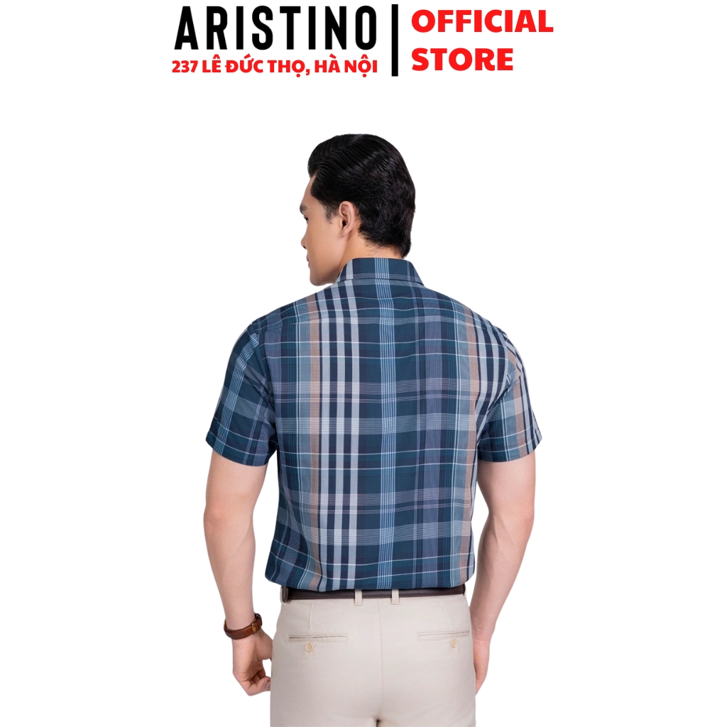 Áo Sơ Mi Nam Ngắn Tay Aristino ASS078AS3 màu xanh cổ vịt kẻ