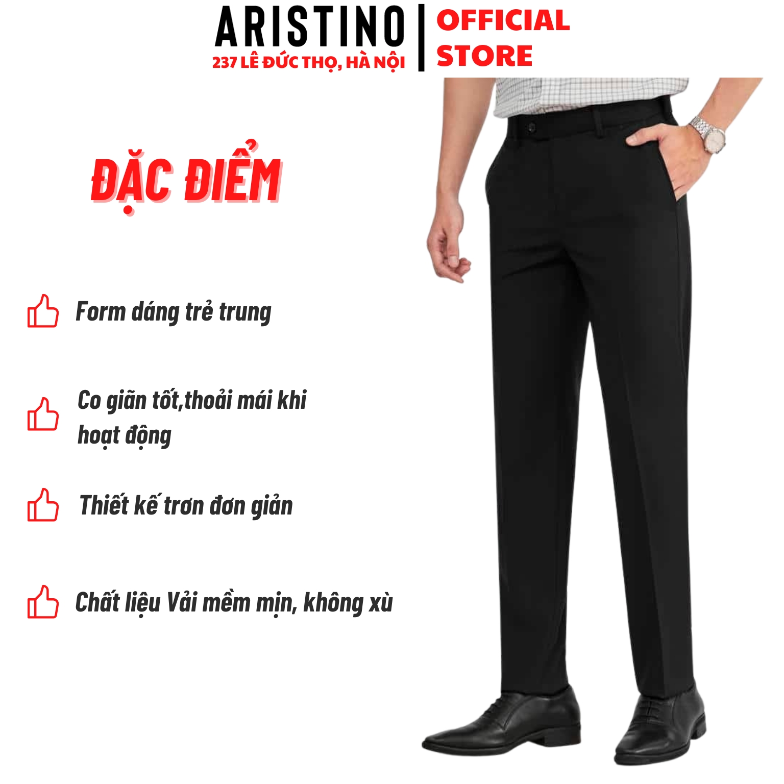 - Tone màu đen basic cùng điểm nhấn logo chữ kí Aristino tinh tế