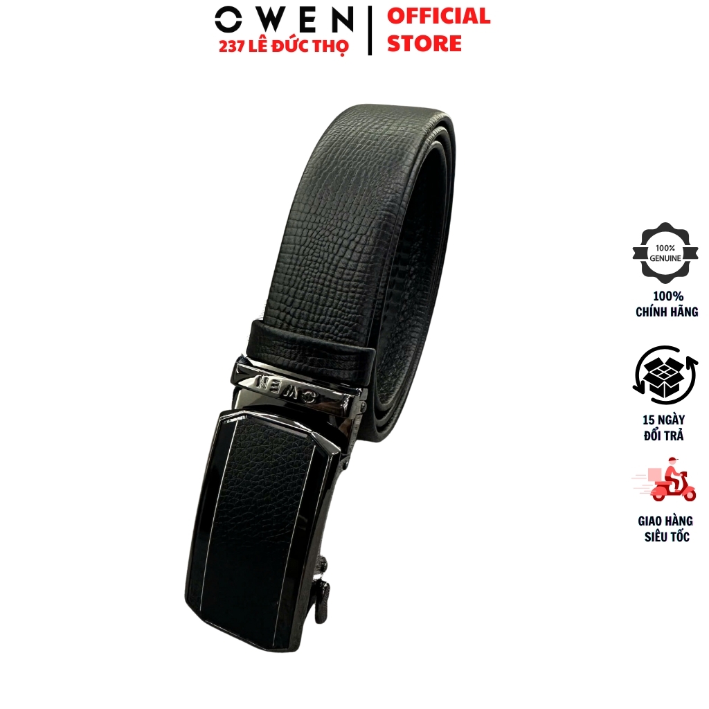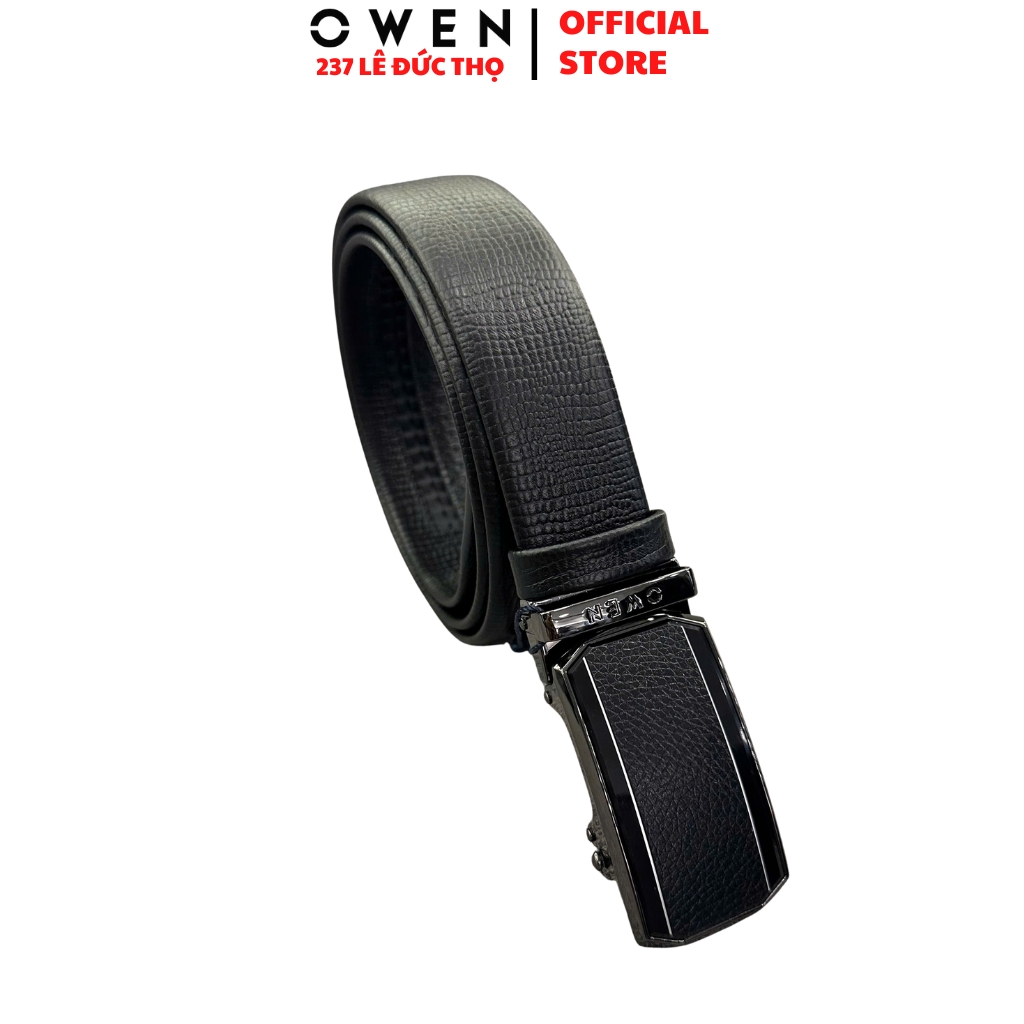 Thắt Lưng Nam Owen BELT256248 day da màu đen Mặt Khóa Trượt Tự Động Chất liệu da bò thật