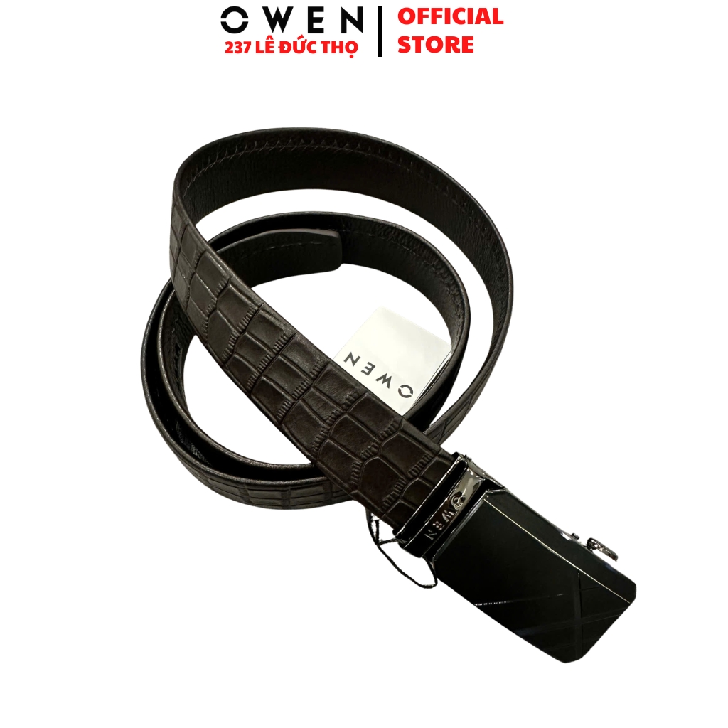 Thắt Lưng Nam Owen BELT261064 dây da màu nâu đậm vân da cá sấu Mặt Khóa Trượt Tự Động chất liệu da bò thật100% LeatherThắt lưng
