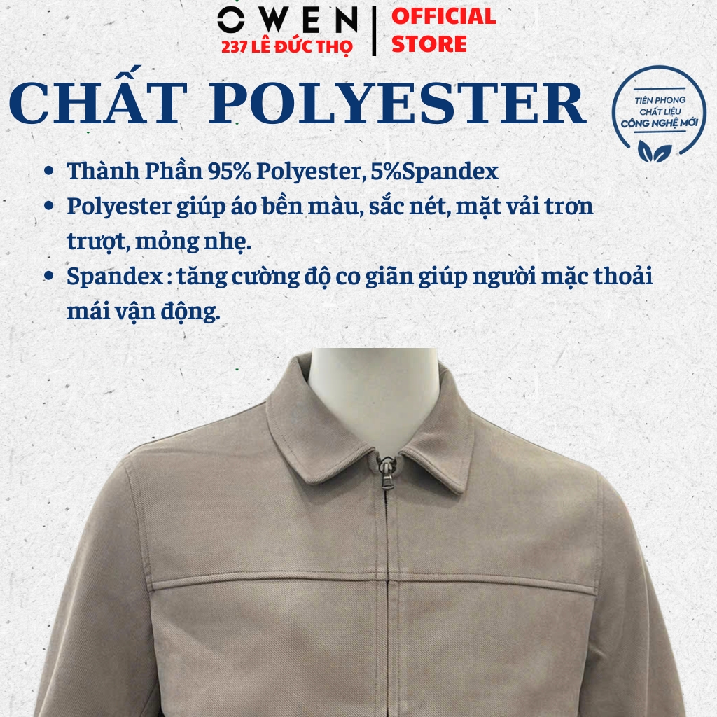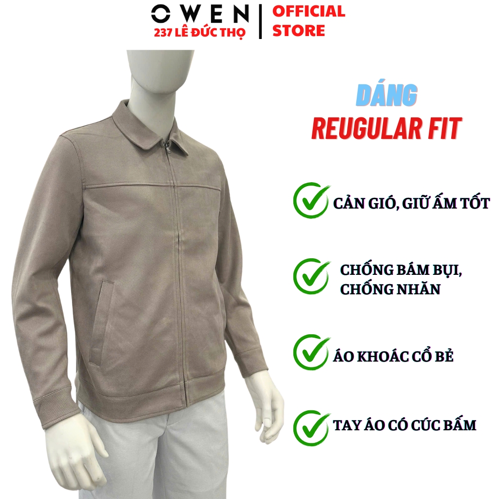 Áo Khoác Jacket Owen JK256072 màu be dáng regular fit cổ bẻ, khóa kéo, cổ tay áo có cúc bấm,bo gấu chất liệu Nylon Spandex
