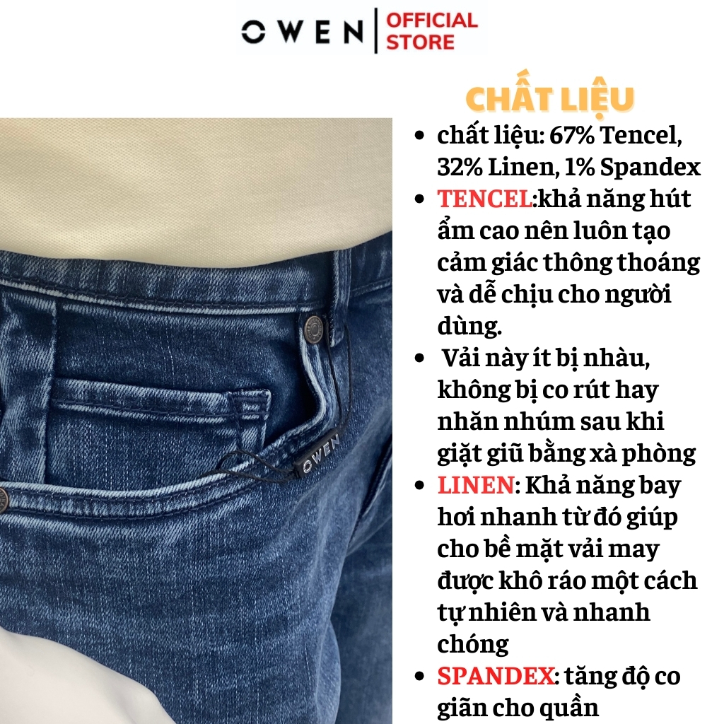 Quần Bò Nam Owen được may từ chất liệu vải Denim cao cấp, mang đến cảm giác thoải mái cho người mặc.