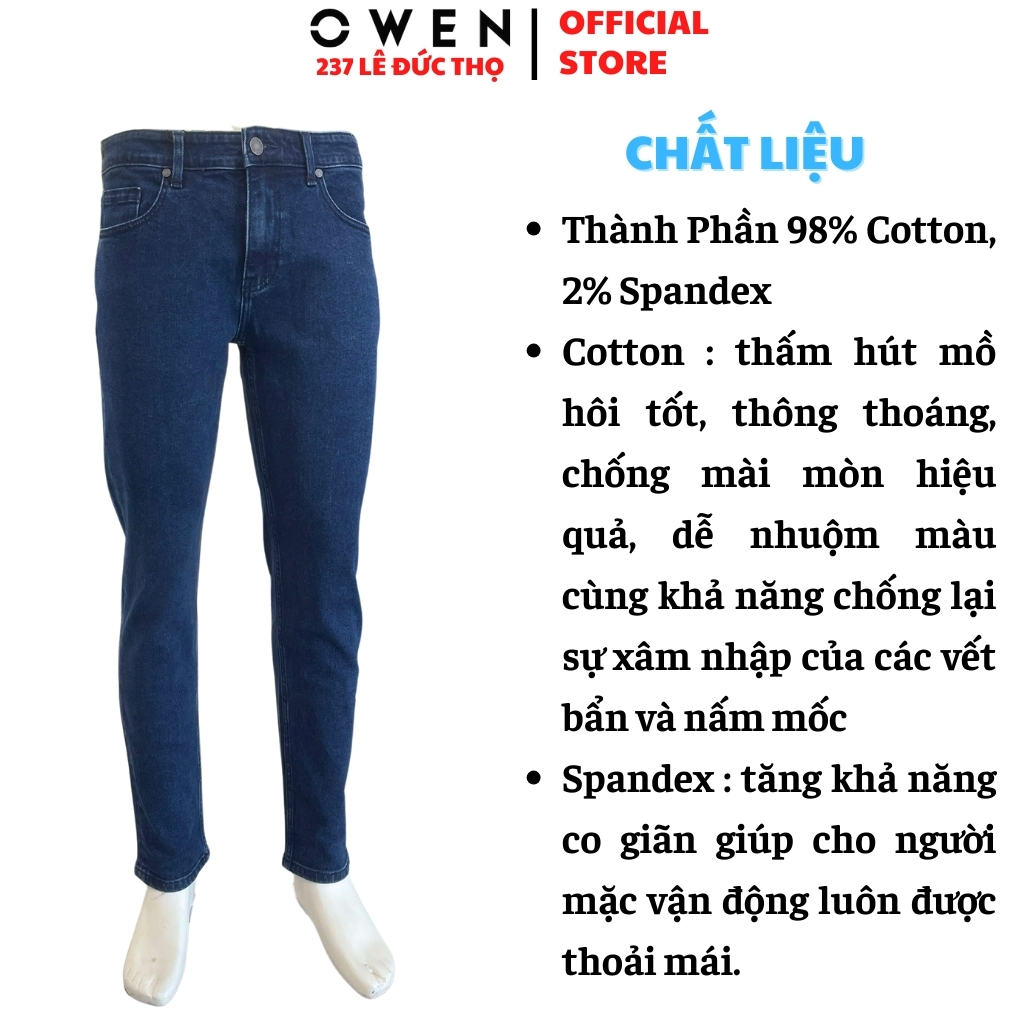 Quần Bò Nam Owen được may từ chất liệu vải Denim cao cấp, mang đến cảm giác thoải mái cho người mặc.