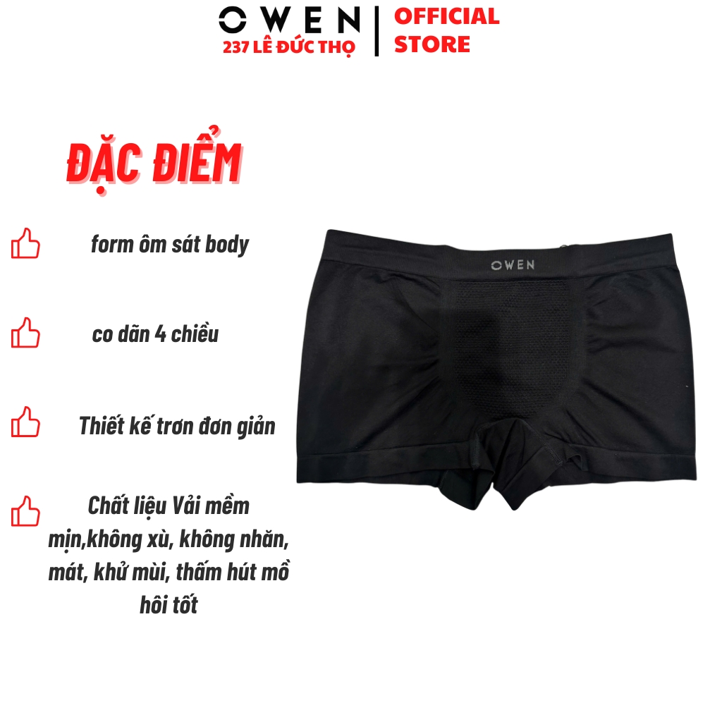 Quần Lót Nam Owen QLB242513 màu đen dáng sịp đùi boxer chất liệu polyamide spandex