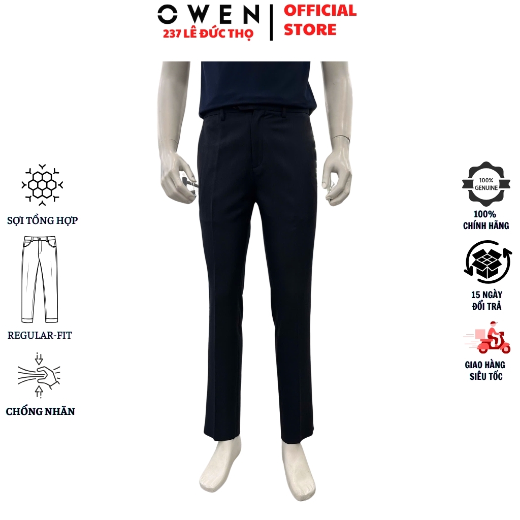 Quần tây Nam Owen QR257086 màu xanh tím than dáng suông regular fit chất liệu nano