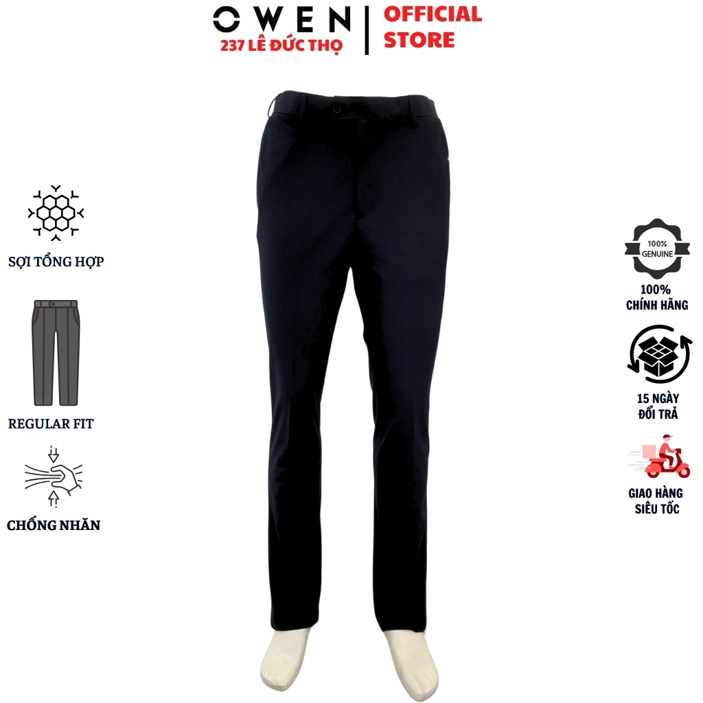 Quần tây Nam Owen QRT252476 màu đen dáng suông regular fit cạp tăng đơ chất liệu pplyester spandex