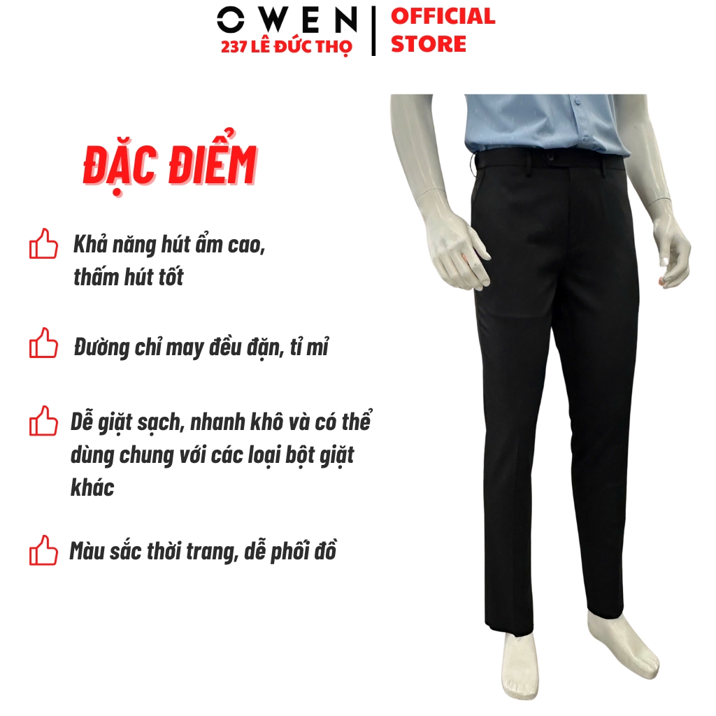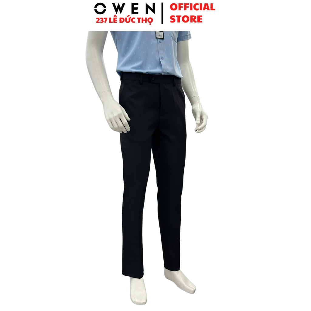 Quần Tây Nam Owen QRT263046 màu đen dáng suông regular fit cạp tăng đơ chất liệu nano